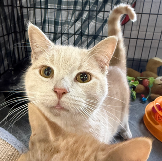 "Truman" is an approximately 7 year old, male dsh. He is a super sweet boy and always sitting at the front of his kennel waiting for attention!